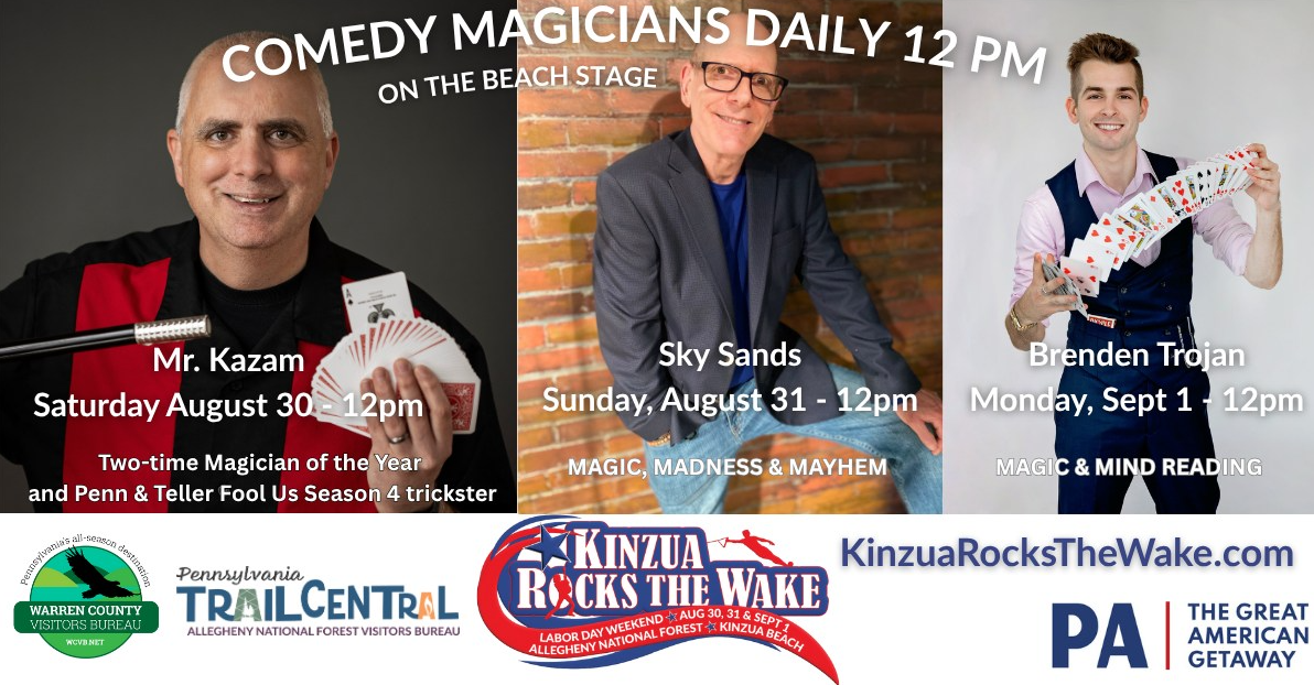 Turn up the volume and kick off your shoes for an unforgettable night of music at the Kinzua Rocks the Wake beach concert. Feel the energy with epic performances by The Classic Rock Experience and The Ultimate Garth Brooks Tribute, with local favorites in the mix. Grab your crew, hit the sand, and get ready to dance under the stars. This is the lakeside party you don’t want to miss.